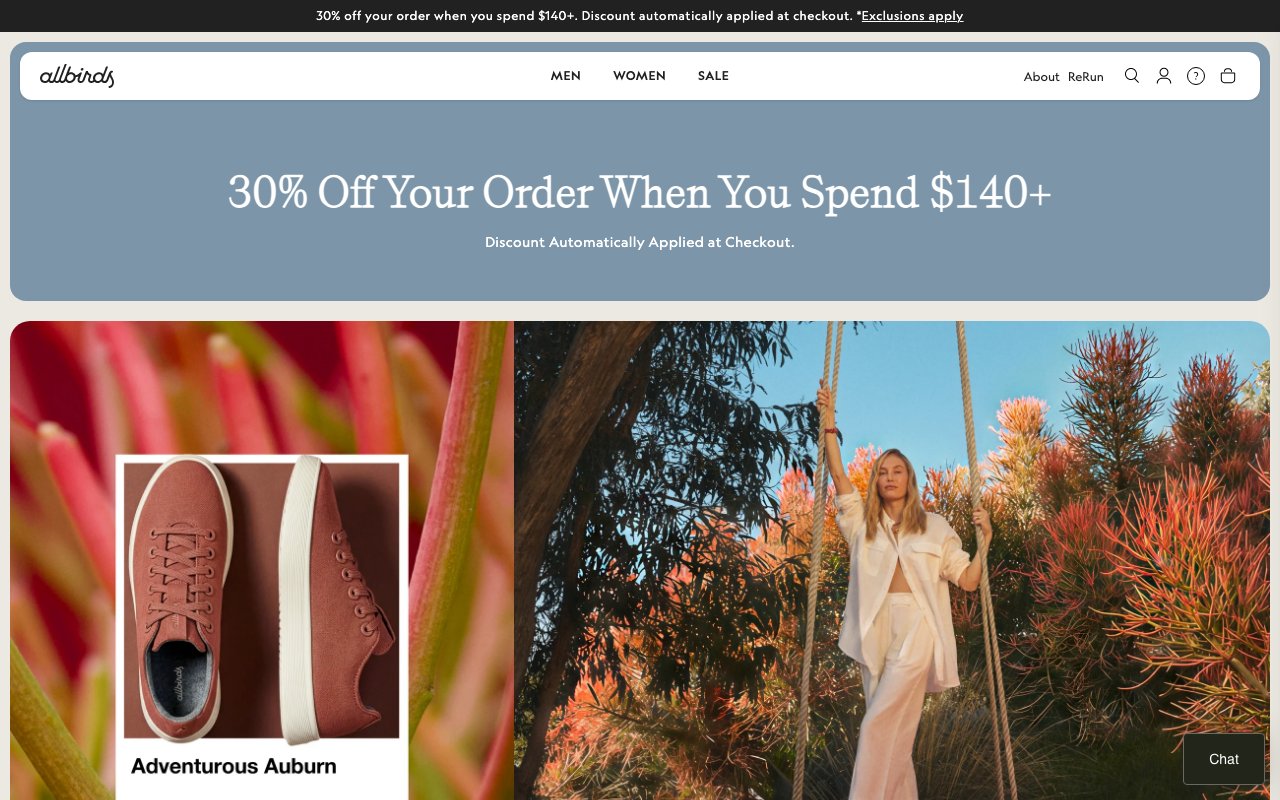 Sustainability-focused creative highlighting natural materials and carbon footprint messaging.