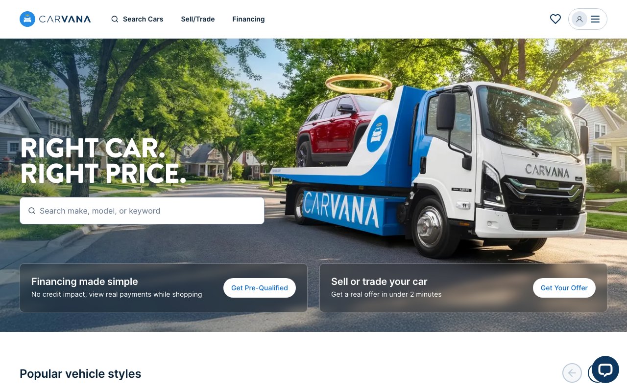 Carvana targets specific vehicle searches with inventory-level ads showing actual cars available.