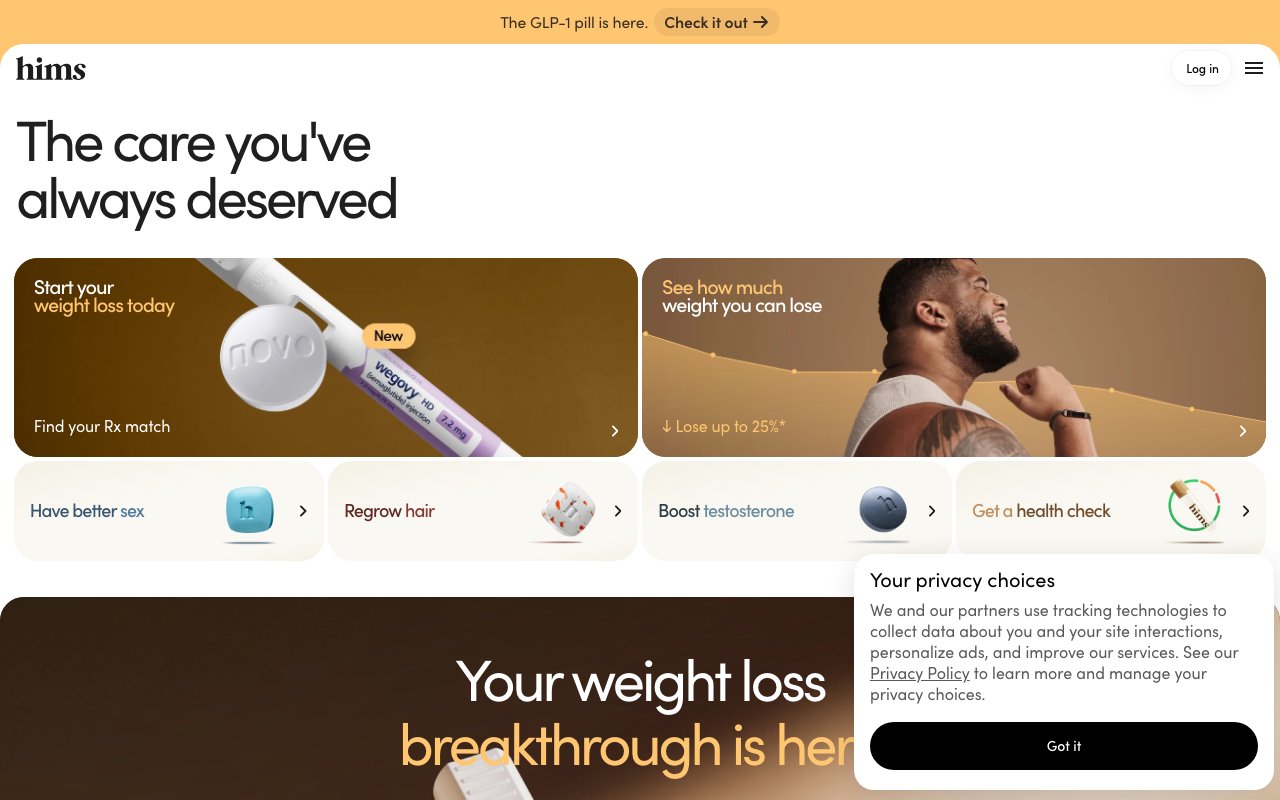 Hims destigmatizes health products through approachable, minimal Meta ad creative.