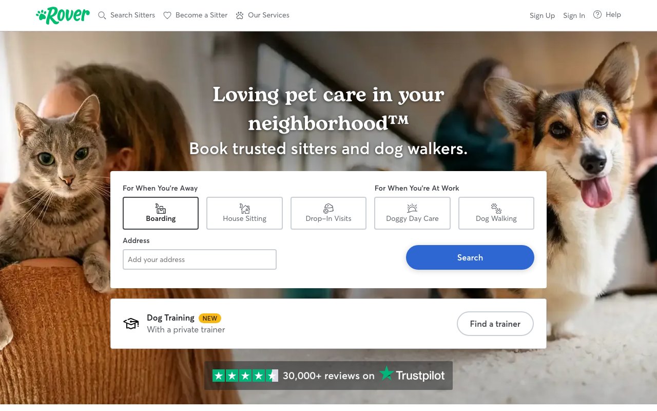 Pet-owner targeted ads with cute animal content driving marketplace signups.