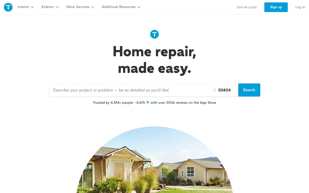 Angi captures home improvement searches with local pro matching and instant quote CTAs.